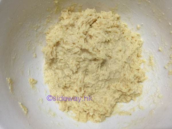 加入蛋白,用膠棒慢慢拌勻粉漿