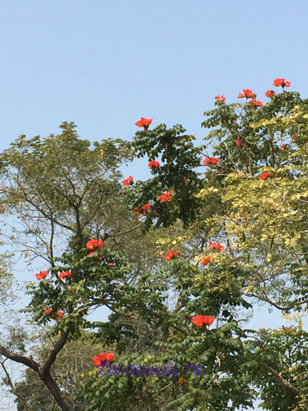 花冠外橙紅色而內黃色,鮮艷奪目的花朵似火焰