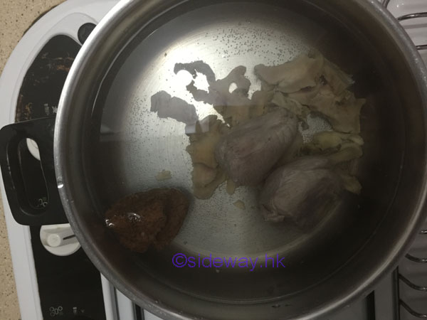 先放果皮,水滾放下材料煲2小時