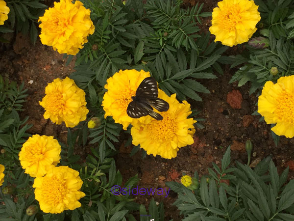 北區公園常見的萬壽菊和報喜斑粉蝶